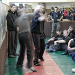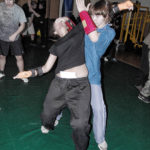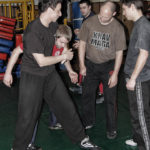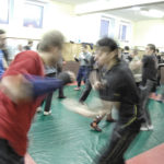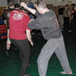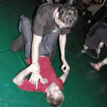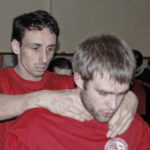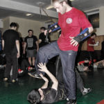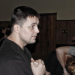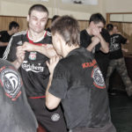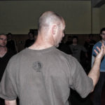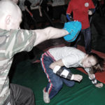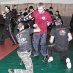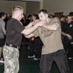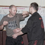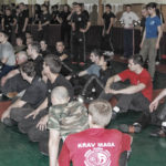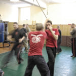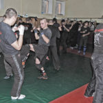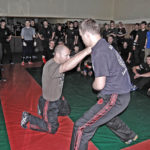 Первый день семинара и правда оказался весьма насыщенным — было много новой информации, которую с ходу переварить было сложновато. Особенно для меня — человека, на самом деле, не очень искушенного в каких-то видах единоборств. «Неполадки» устраняли инструктора, сновавшие по залу и помогавшие тем, кто неправильно душил своего партнера или не очень убедительно бил ему в пах. Те, кто забывал о самом святом в крав-маге — постфайте, резонно получали «напоминание» от инструктора при помощи специально заготовленной тренировочной дубинки. Правда, все проходило без какого-то излишнего фанатизма — инструктора постоянно призывали сохранять рабочий ритм и при этом контролировать силу своего удара. Амнон Дарса, в свою очередь, также просил по возможности заботиться о своем партнере — be nice to the partner. Помогало, как водится, не всегда, поэтому, пользуясь случаем, хочу извиниться перед партнером, с которым мы работали в первый день в паре. Я действительно не хотел, так получилось…
